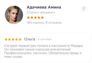 При онлайн-записи можно изучить отзывы и рейтинг мастеров, чтобы выбор для клиентов был максимально удобным.