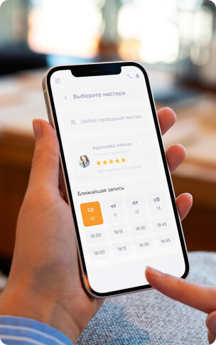Выбор услуги, мастера, даты и времени без звонка администратору.
