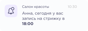 В 1С:Салон красоты можно настроить отправку напоминаний за несколько часов до начала визита. Это позволит снизить процент опозданий и неявок.